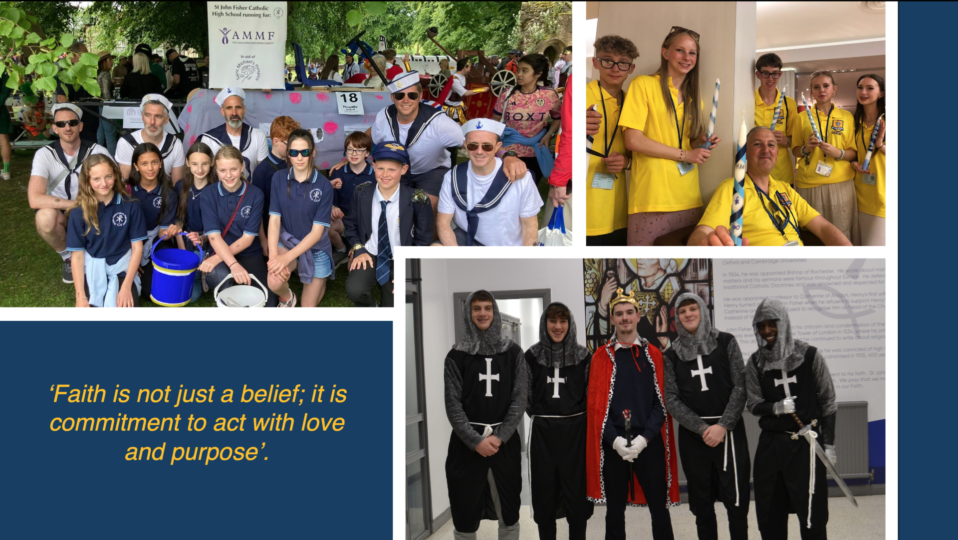 Putting faith into action involves actively living out our beliefs through service, love, and obedience to God's teachings. The Bible teaches that faith without works is dead (James 2:17), highlighting the necessity of demonstrating our beliefs through good deeds and service to others. At St John Fisher, we put our faith into practice in the following ways: